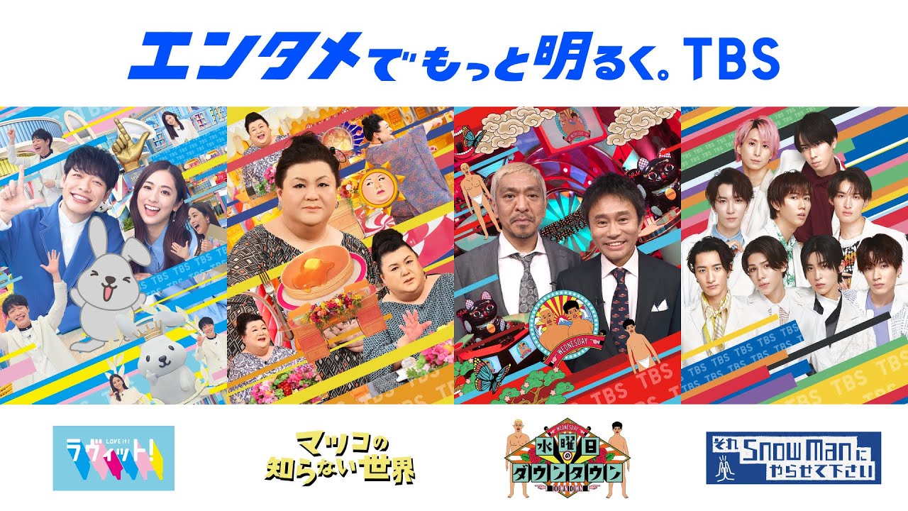 エンタメでもっと明るく!「ラヴィット」「マツコの知らない世界」「 水曜日のダウンタウン」「それSnow Manにやらせて下さい」TBSバラエティ4番組のブランドビジュアル動画です。